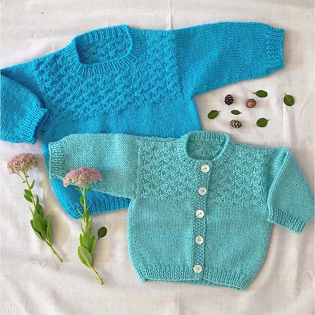 #23 Mock Cable & Basketweave- Baby Sweaters Knitting Pattern - Yankee Knitter Designs