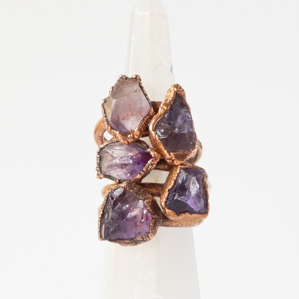 A raw piece of amethyst electroformed in copper by The Cyprus Cabinet.