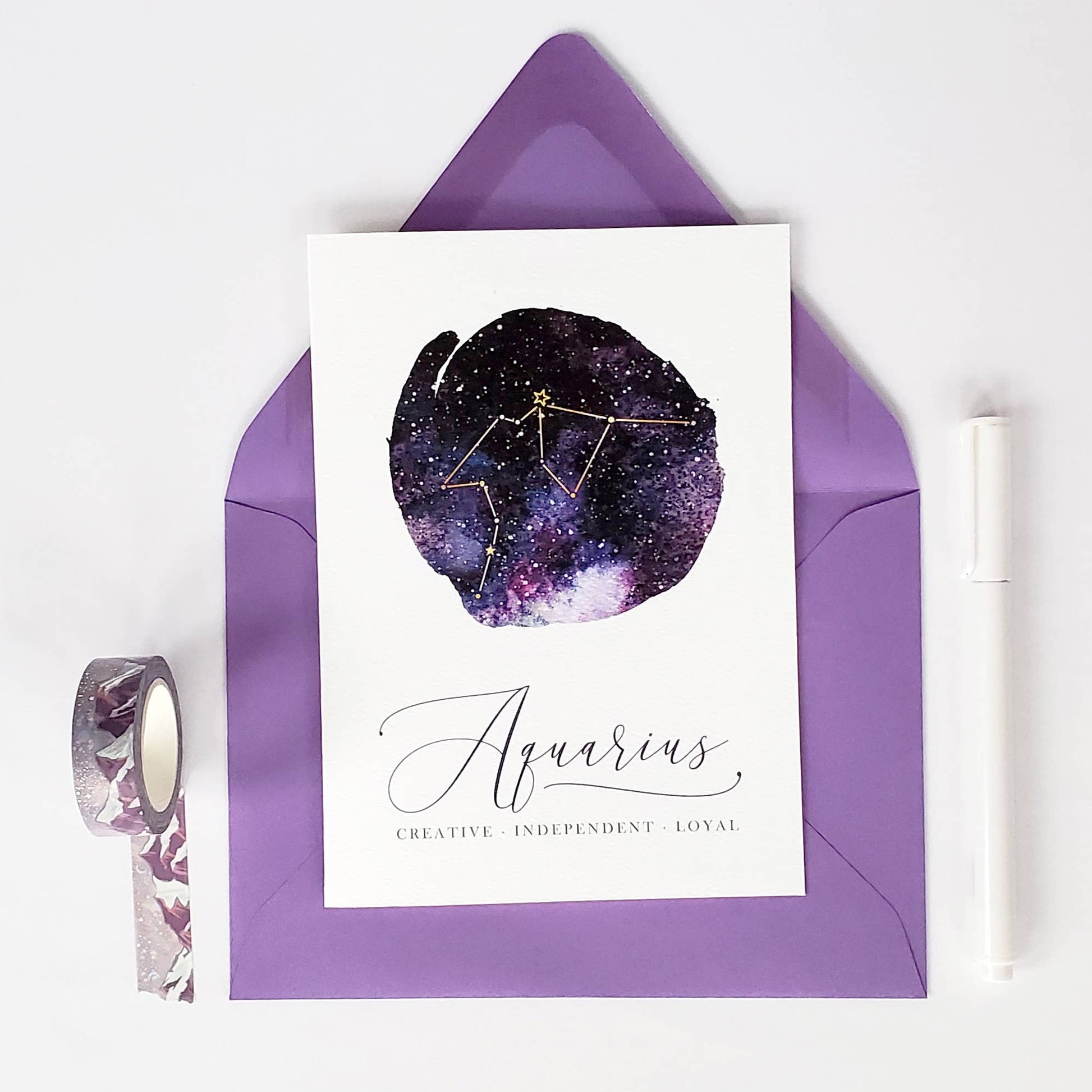 The perfect astrology birthday card for the Aquarius in your life. Lucky Dog cards are hand-folded and printed on thick, felt-textured stock to create a unique and memorable stationery experience.