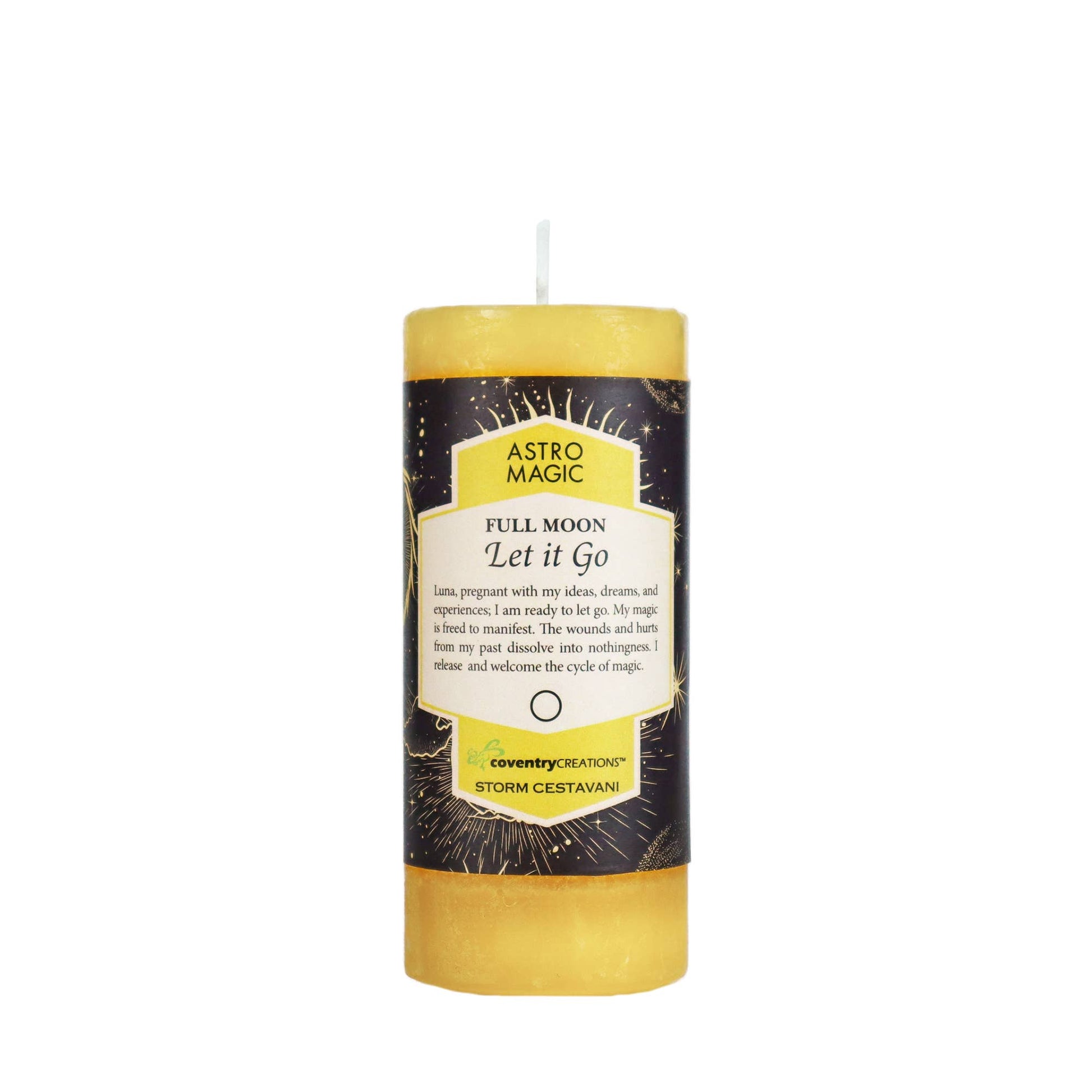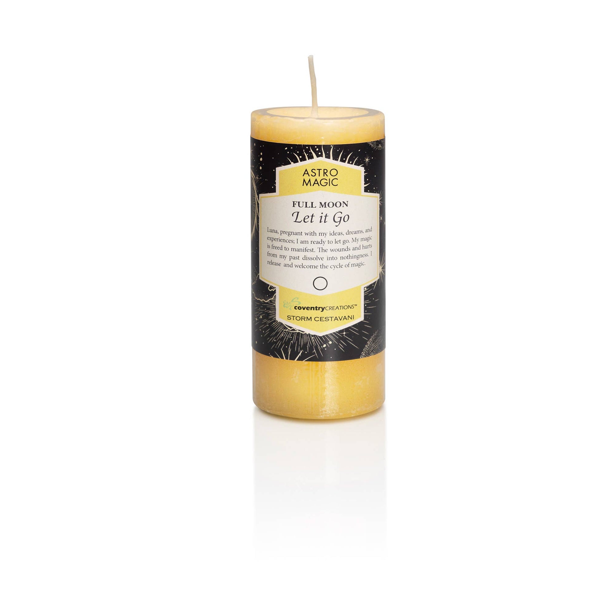 Release your spell, clear the old, complete a cycle, or cleanse yourself of limits, the moon is at her fullest and there is no room for more. Use the Full Moon candle to help you let it go to begin the cycle of what is next for you. Our solar system is 4.5 billion years old and the planets move every single day giving us opportunities to change and transform our lives. The Astro Magic candle puts you in charge of your relationship with the planets. Tap into this cosmic energy station to align, amplify and direct your spell. Start by identifying your challenge, then set your intention, light your Astro Magic candle, and say the invocation to get aligned with the planet’s energy and take charge of your life. Candle Size: 2” x 4” Burn Time: 40 Hours Color: Marigold Scent: Woodsy-floral ATTENTION: Remove all packaging before lighting. Never leave a burning candle unattended. Place in a fire-safe container. Keep away from drafts, flammable objects, children, and pets.