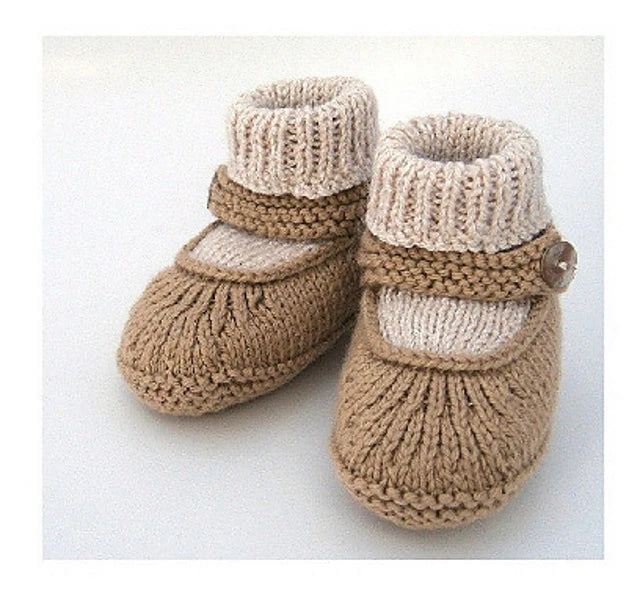 Knit your own pair of baby Merry-Janes with this pattern! These booties are cozy and stylish, and babies love them!