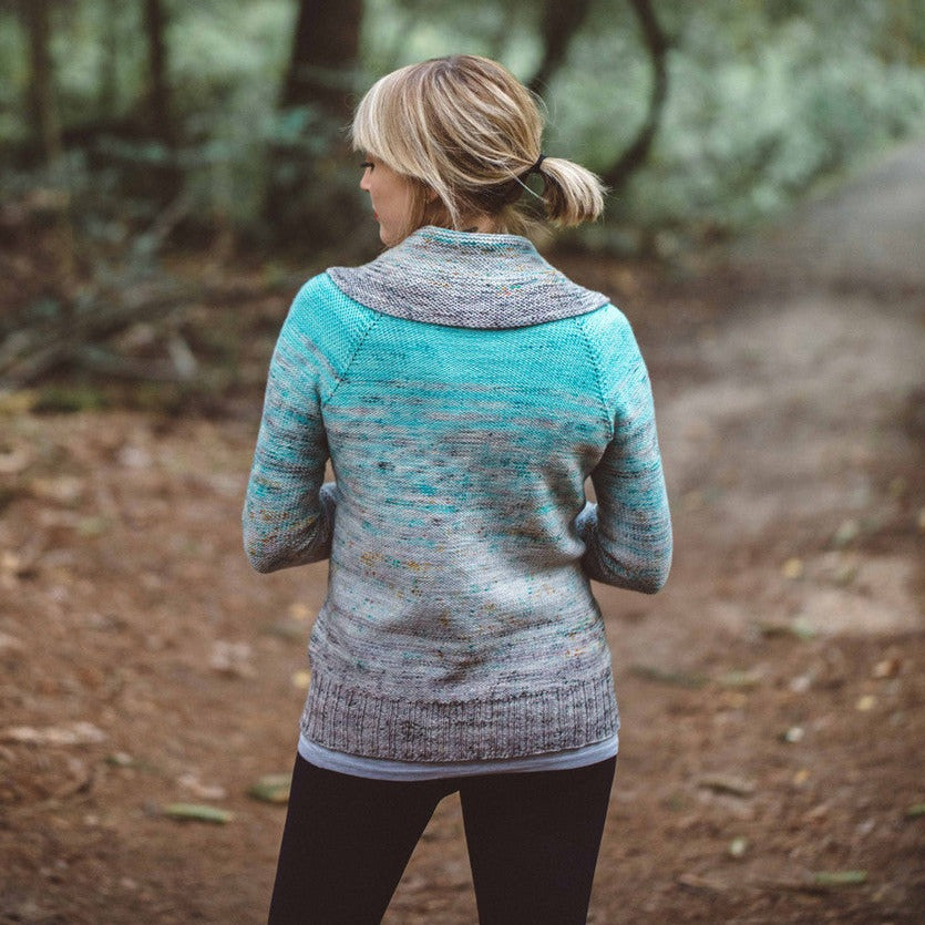 Another way to fade! This open cardigan is super cozy with its garter shawl collar! The Reverse Stockinette makes a stunning canvas to fade on for the most unique cardigan in your wardrobe!! This cardigan keeps me feeling cozy and stylish all in one!