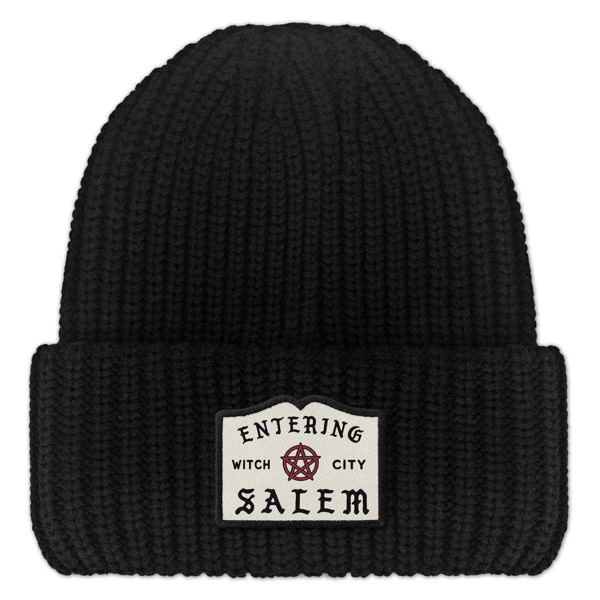 Are you a goth who loves the Witch City? Show off your Salem love with this chunky knit hat! This hat features an Entering Salem patch, inspired by the actual road sign leading to Salem.