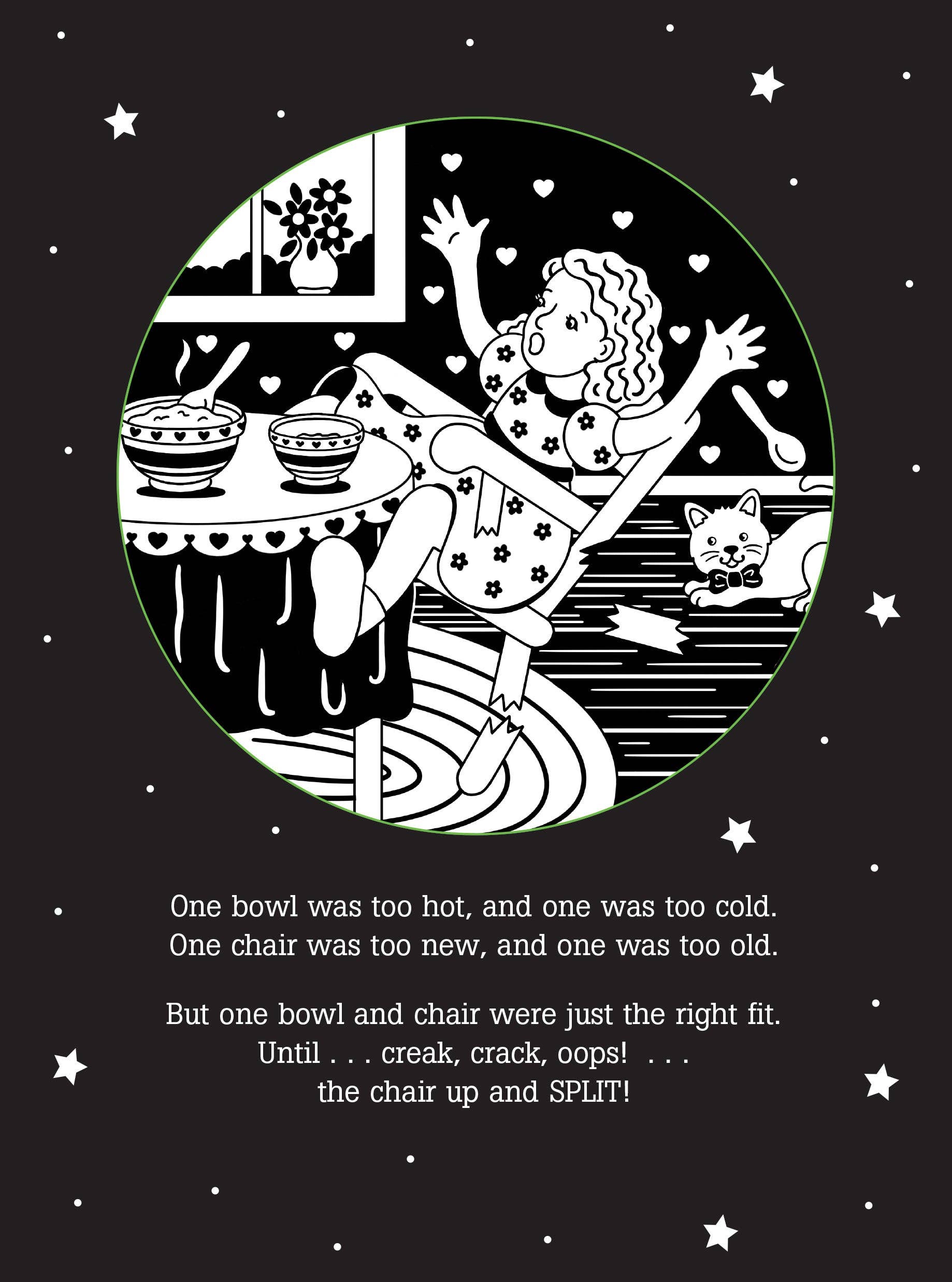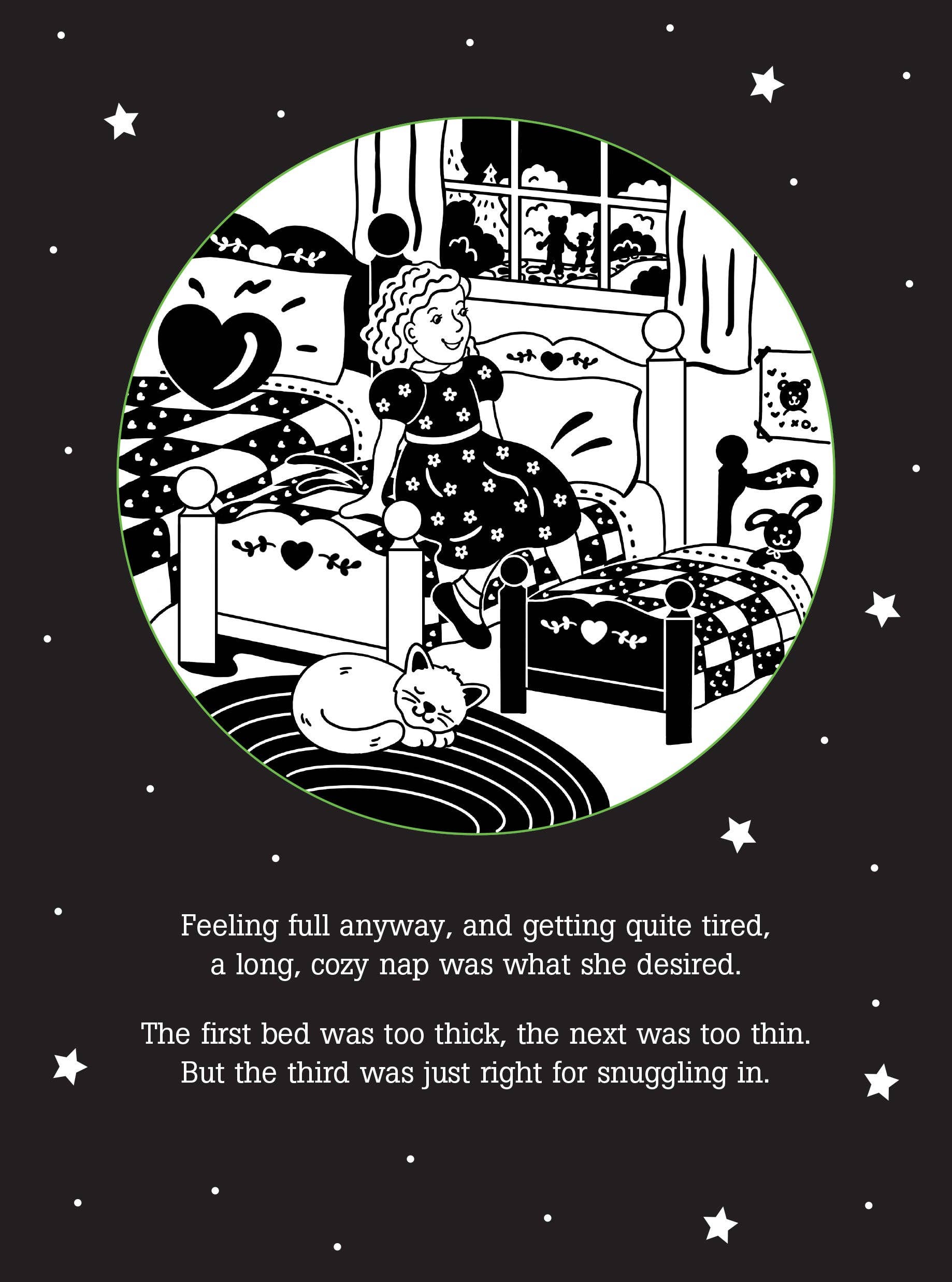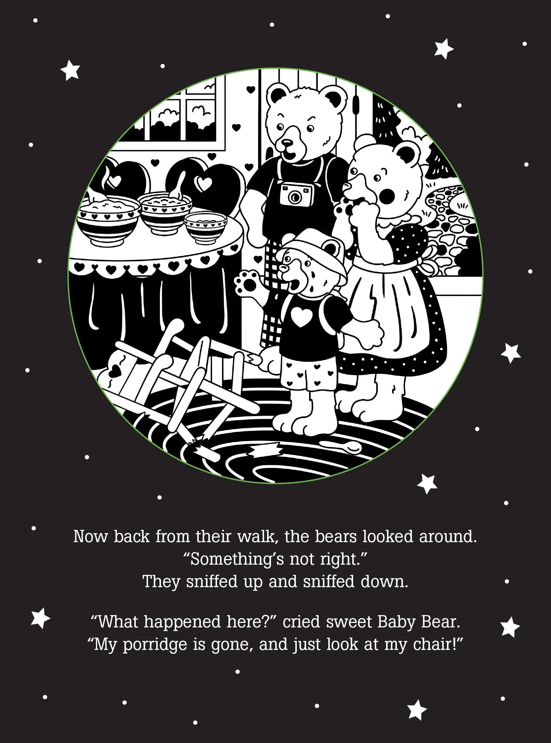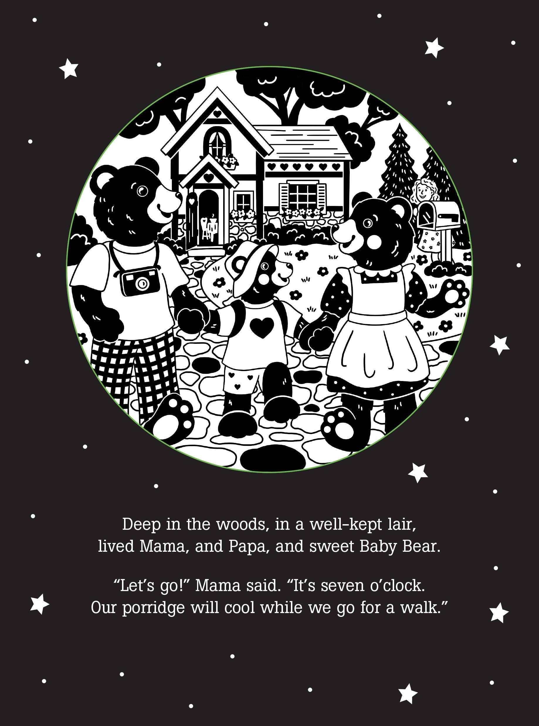 ''Deep in the woods, in a well-kept lair, lived Mama, and Papa, and sweet Baby Bear.'' ''Let's go!'' Mama said. ''It's seven o'clock. Our porridge will cool while we go for a walk.'' But The Three Bears are in for a BIG surprise when they return home! Share this favorite story with your child at bedtime! Simply shine the beam of a light (not included) through the ''windows'' on each page to cast the pictures on the wall as you read the story within. It's a comforting way to end the day and experience time together. Please note: For best results, use this shadow book with a small, single-bulb light source. A small pen light, other single-LED light, or the light on the back of a smartphone is recommended. Multi-LED flashlights are not recommended. If you have trouble getting a clear image, try moving your light closer to or farther away from the page. Ages 3 to 9. Sturdy covered wire-o hardcover binding.