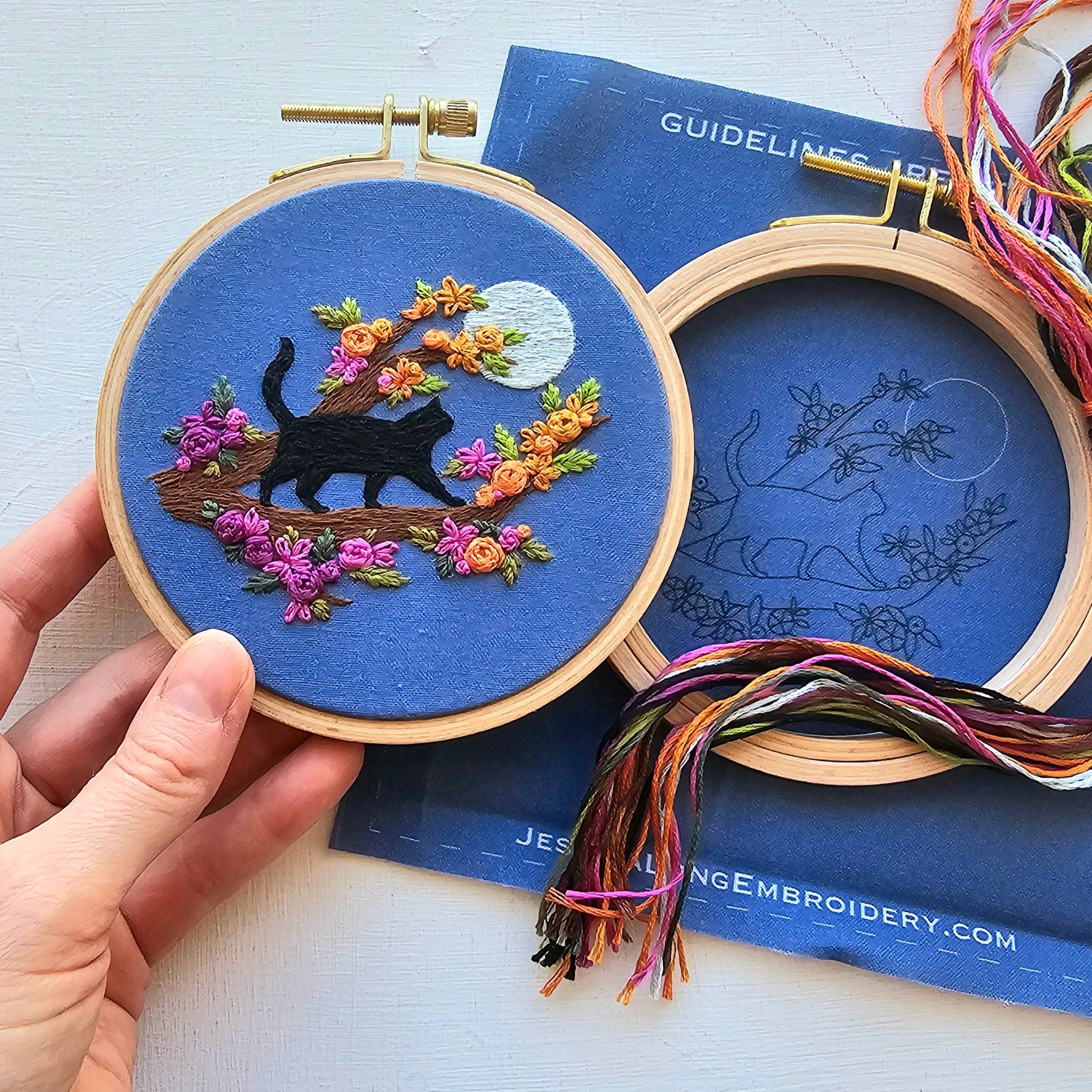 Mini Black Cat & Full Moon Embroidery Kit