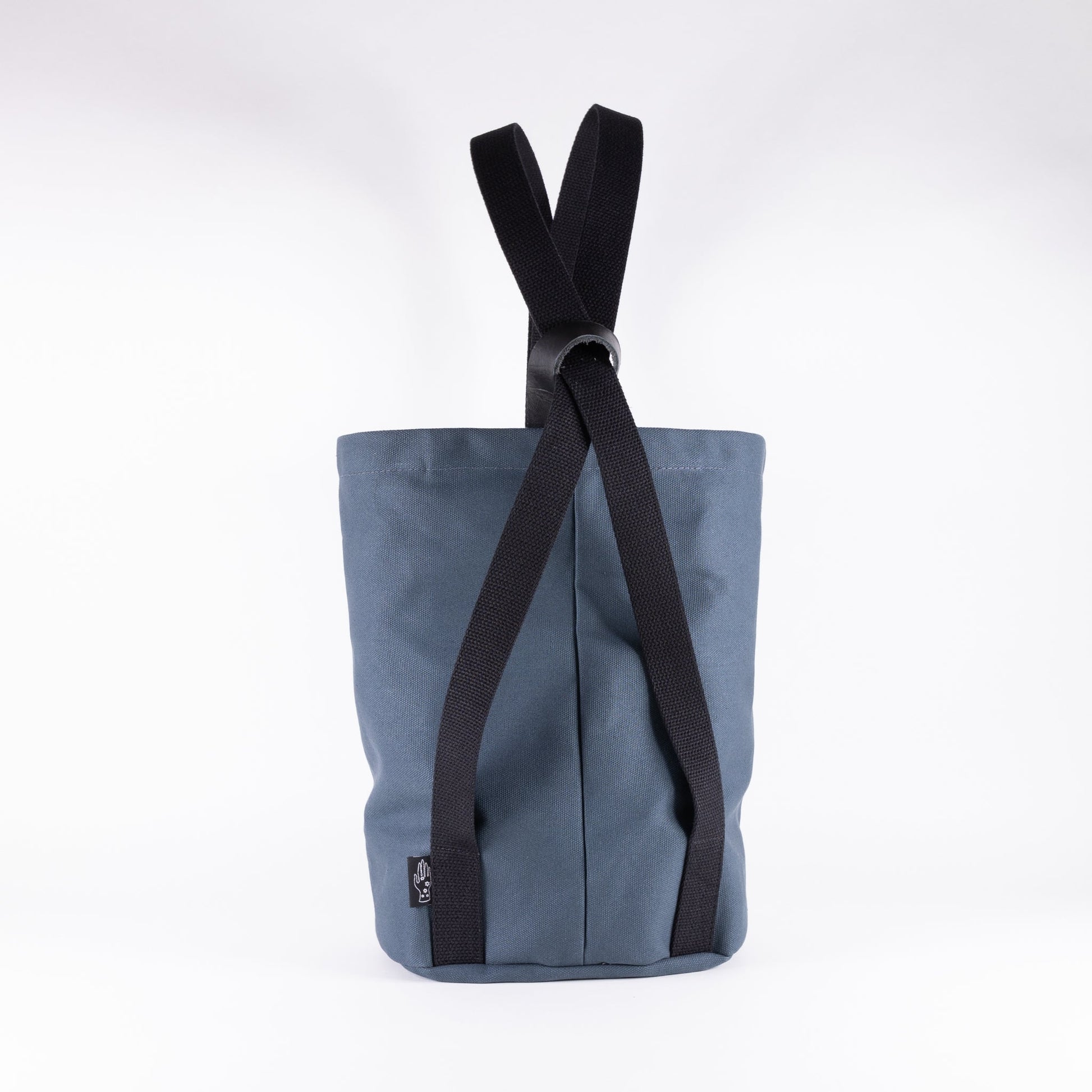 Constructed from 18 oz water repellent canvas, thick cotton webbing straps and a leather hang loop. This innovative and versatile bag can be set on the ground and knit from like a yarn bowl, carried on your forearm, pull the straps through and wear it like a sling bag or split the straps and carry it like a true backpack, knitting all the while. It has a modern and sophisticated shape you won’t tire of. Take this guy anywhere!