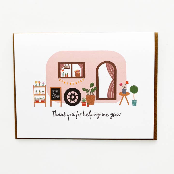 Thank you for helping me grow! A sweet thank you card illustrated by local artist Keegsie.