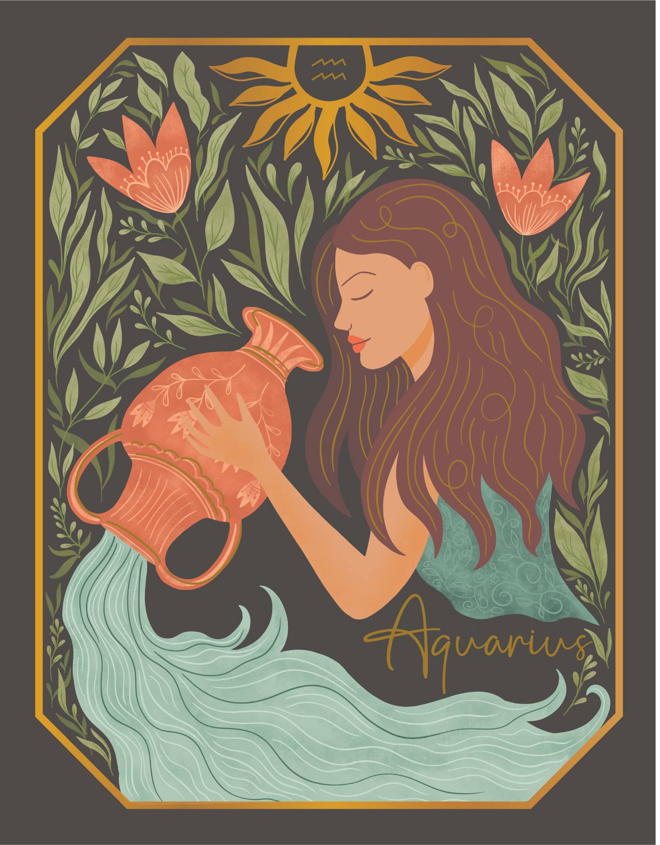 Featuring a graceful woman pouring water from an urn among lush greenery and vibrant coral flowers, all framed beautifully in gold foil, this card is ideal for Aquarius birthdays or as an inspiring thinking of you note. Each card back details the Aquarius characteristics and dates.