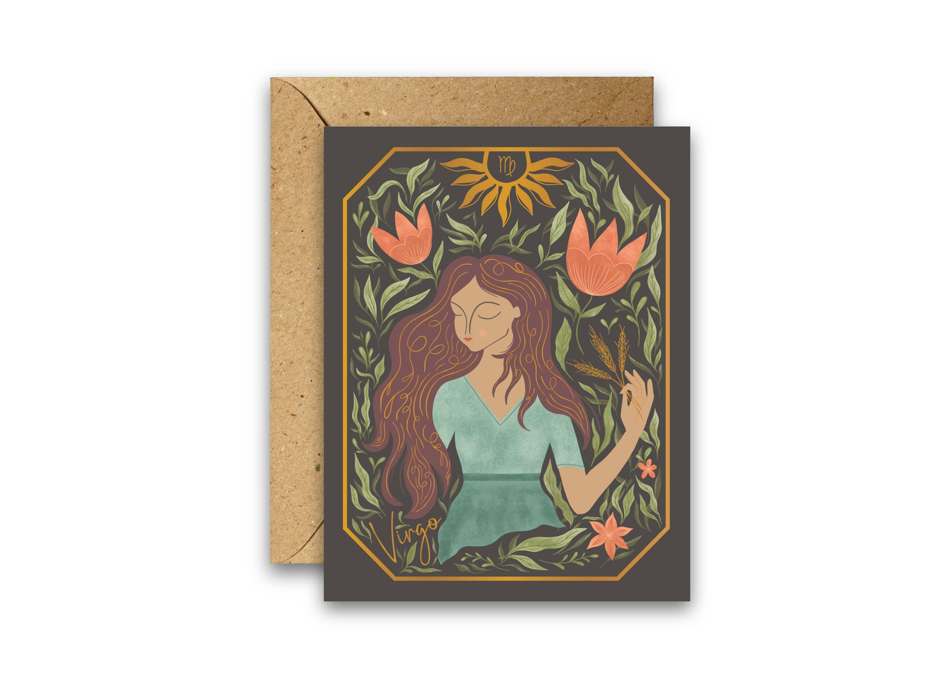 The Virgo Zodiac Garden Gold Foil Greeting Card: Single