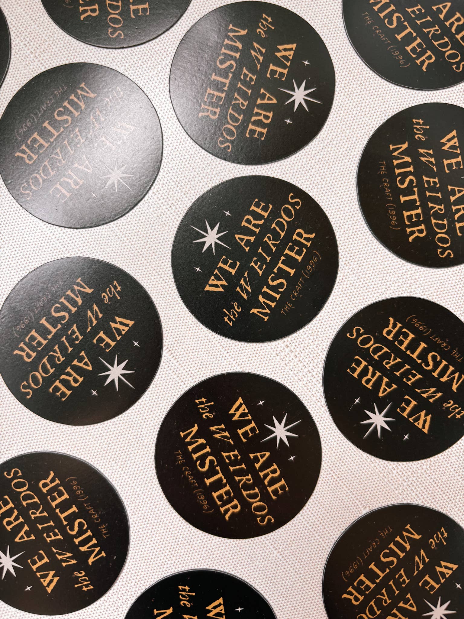 Approximately 2" x 2" magnet, matte vinyl material, good for indoor or outdoor use.